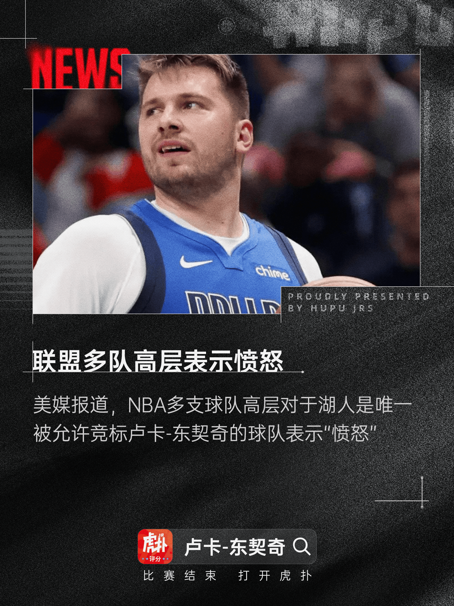 联盟中的高层多位高层表示,他们对这一情况既感到愤怒又充满嫉妒,愤怒因为湖人凭借其光鲜亮丽、嫉妒明星驱动的于湖形象,成为唯一有机会争夺东契奇的人独球队。